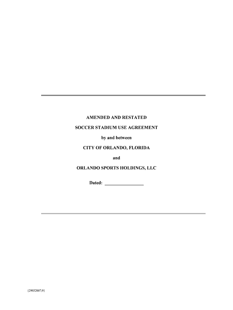 AMENDED AND RESTATED SOCCER STADIUM USE AGREEMENT by and between CITY OF ORLANDO, FLORIDA and ORLANDO SPORTS HOLDINGS, LLC Dated: 29032007;9TABLE OF CONTENTS Page ARTICLE 1 1.1 1.2 1.3 1.4DEFINITIONS