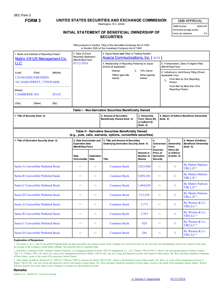 Get the free FORM 3 - Acacia Communications, Inc.