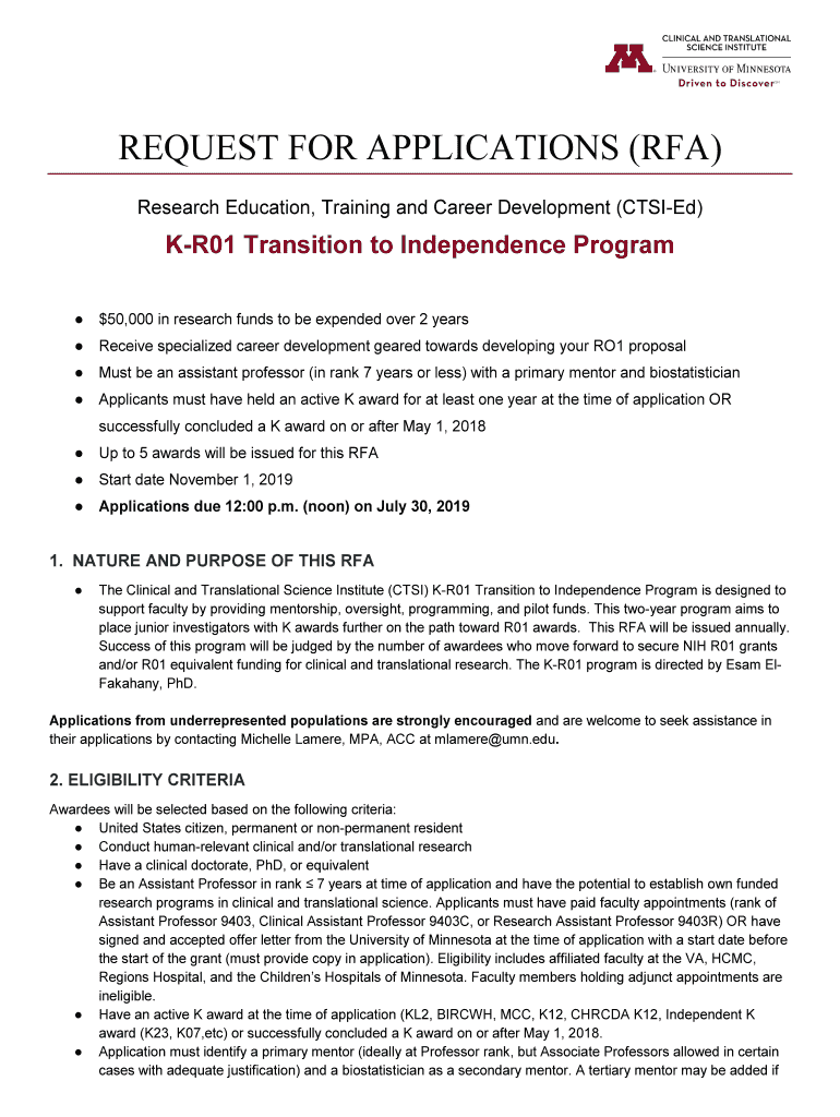 Research Education, Training and Career Development (Cosied)KR01 Transition to Independence Program