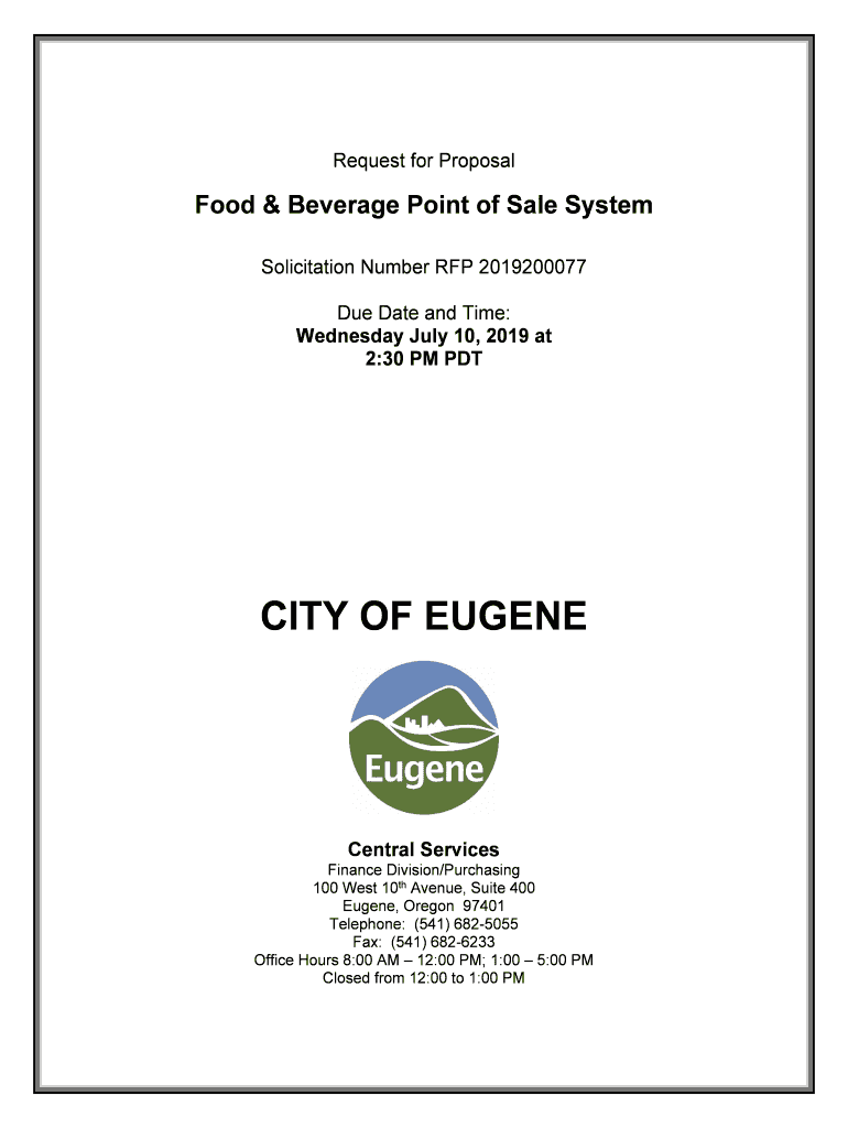 Request for ProposalFood & Beverage Point of Sale System Solicitation Number RFP 2019200077 Due Date and Time: Wednesday, July 10, 2019, at 2:30 PM PAUCITY OF EUGENECentral Services Finance Division/Purchasing