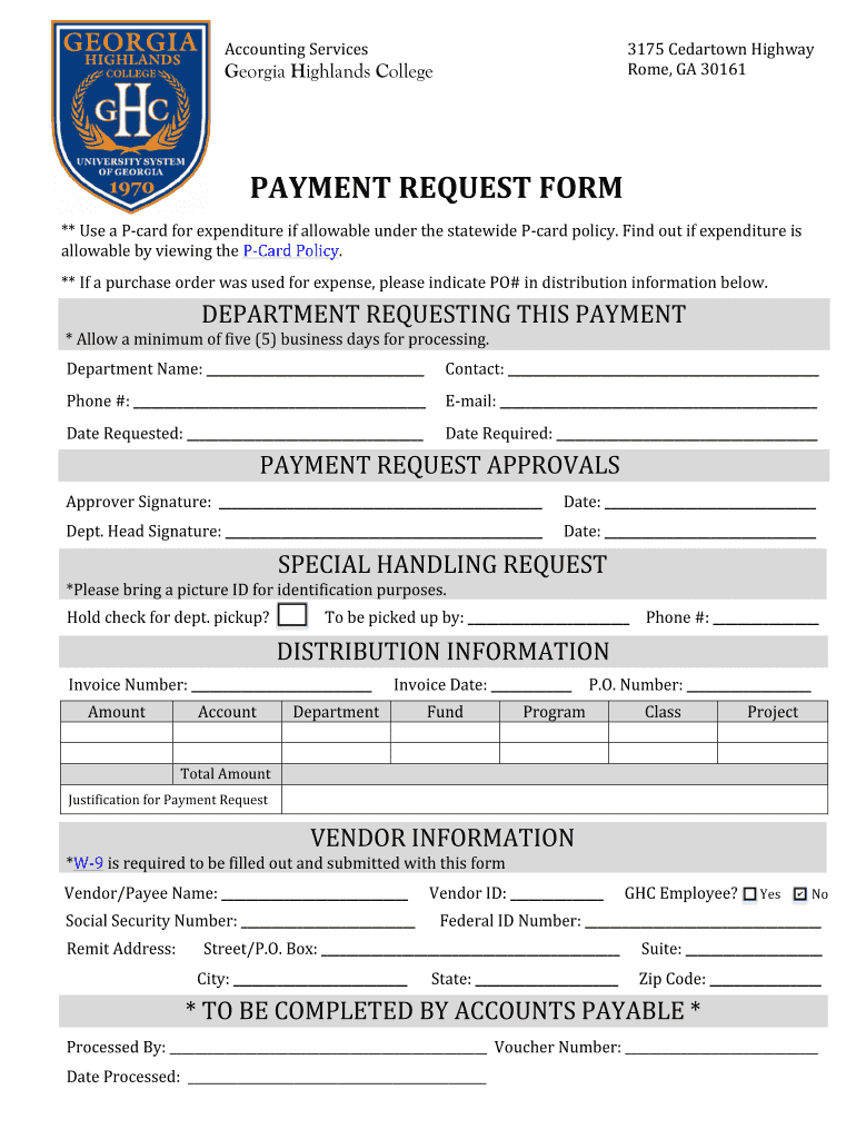 Rome,GA30161Georgia Highlands CollegePAYMENTREQUESTFORM