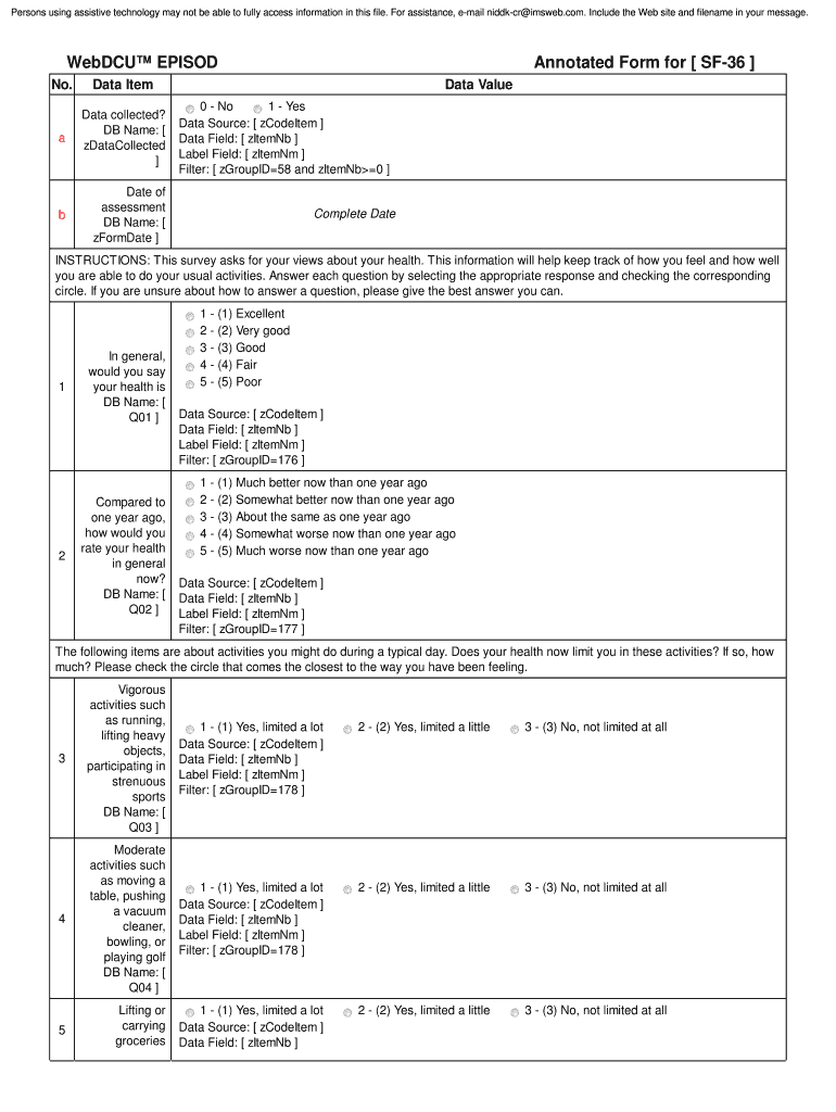 Get the free WebDCU EPISOD Annotated Form forSF-36