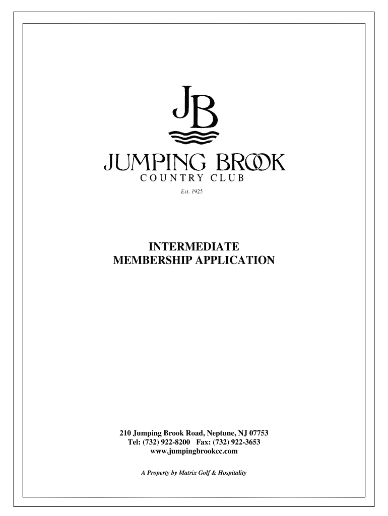 .INTERMEDIATE MEMBERSHIP APPLICATION210 Jumping Brook Road, Neptune, NJ 07753 Tel: (732) 9228200 Fax: (732) 9223653 www.jumpingbrookcc.com A Property by Matrix Golf & HospitalityINTERMEDIATE MEMBERSHIP