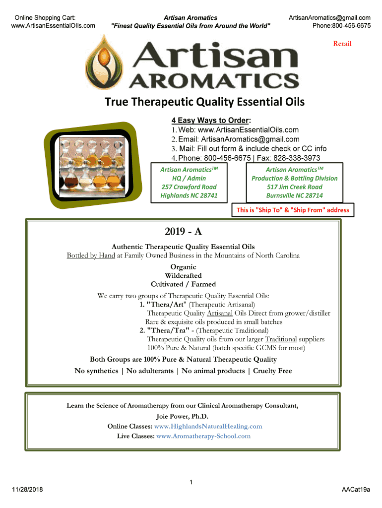 Online Shopping Cart: www.ArtisanEssentialOIls.comArtisan Aromatics “The Finest Quality Essential Oils from Around the World “ArtisanAromatics gmail.com Phone:8004566675RetailTrue Therapeutic