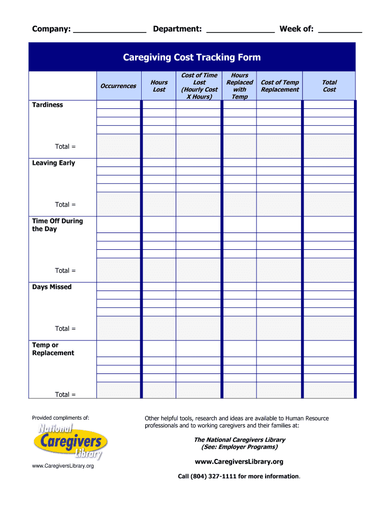 Get the free Caregiving Cost Tracking Form