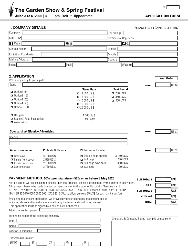 June 3 to 6, 2020 | 4 11 pm, Beirut HippodromeAPPLICATION FORM1. COMPANY DETAILSPLEASE FILL IN CAPITAL LETTERSCompany