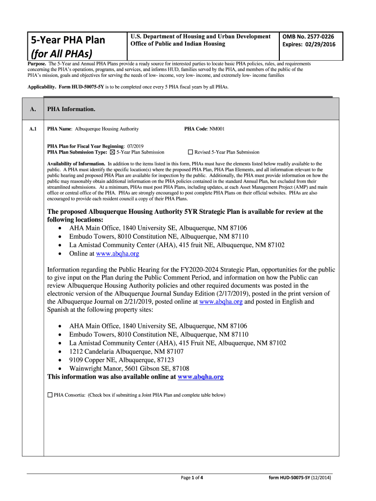 Expires: 02/29/2016Purpose. The 5Year and Annual PHA Plans provide