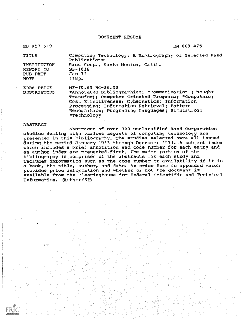 DESCRIPTORSComputing Technology; A Bibliography of Selected Rand