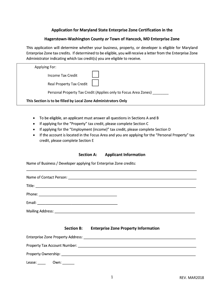 Washington County, Maryland Enterprise Zones State Income Tax Credits Local Real Property Credits March 2018Washington County Department of Business Development 100 West Washington Street, Suite 1401