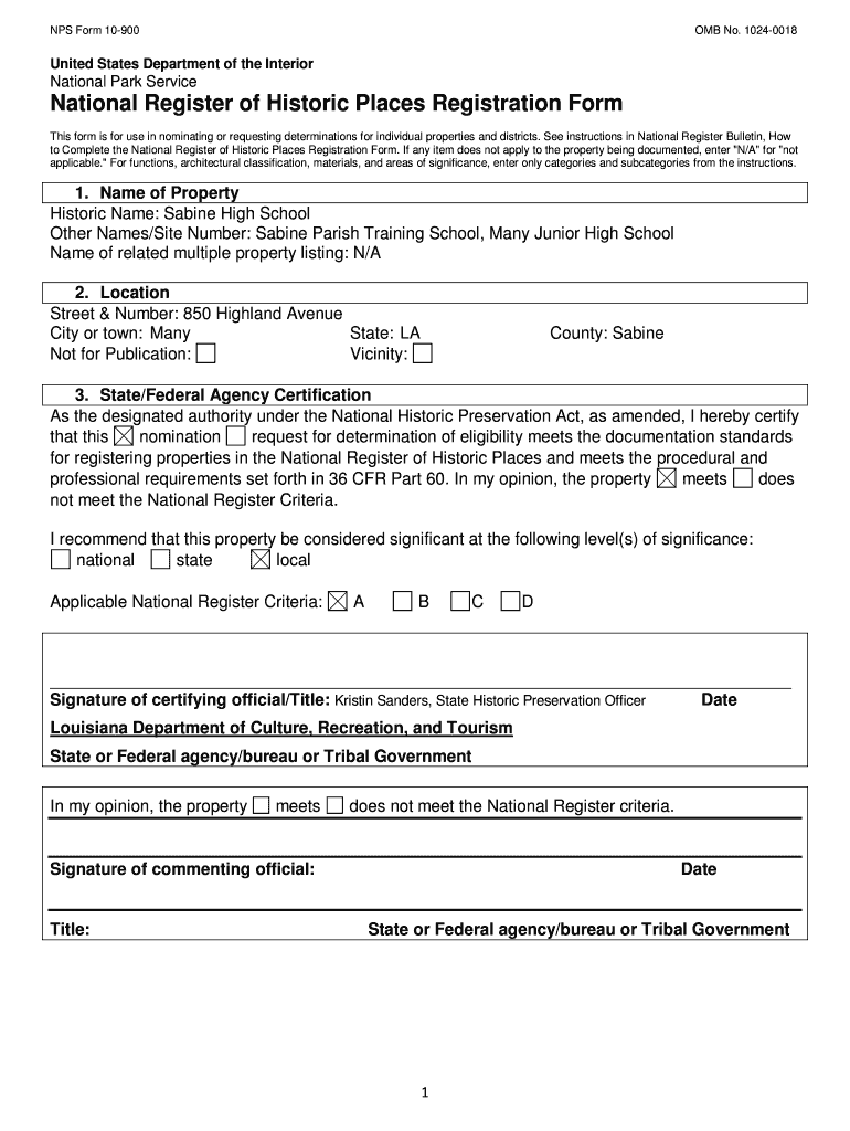 NPS Form 10900OMB No. 10240018 United States Department of the International Park ServiceNational Register of Historic Places Registration Form This form is for use in nominating or requesting determinations