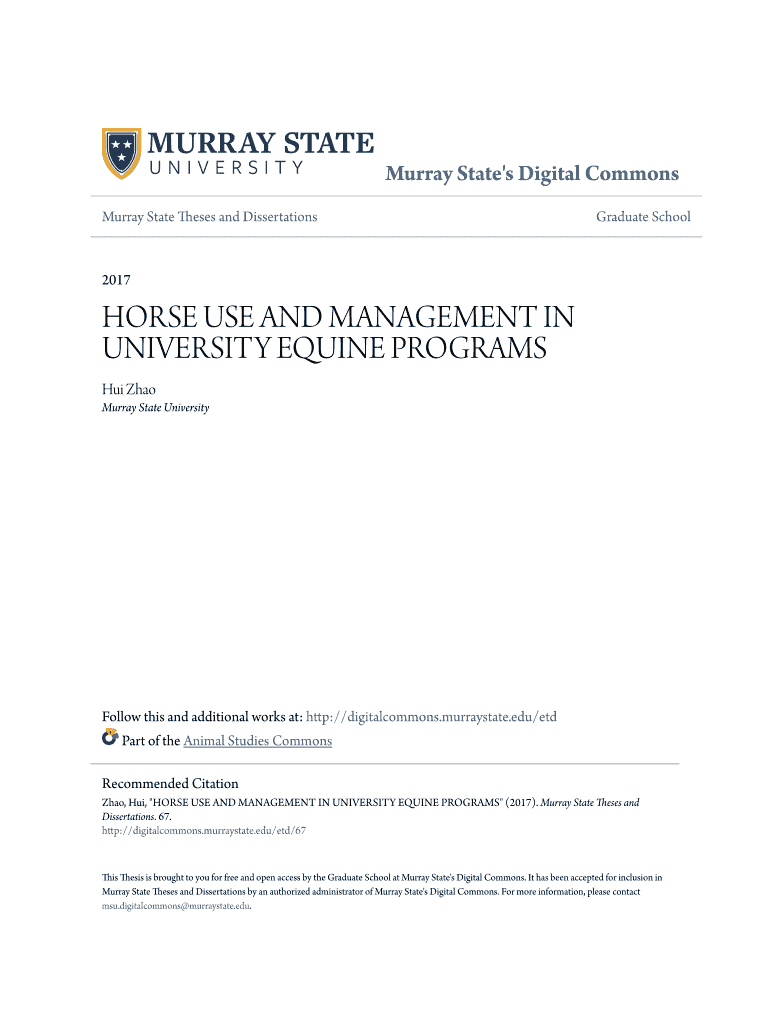 Murray State's Digital Commons Murray State Theses and DissertationsGraduate School2017HORSE USE AND MANAGEMENT IN UNIVERSITY EQUINE PROGRAMS Hui Zhao Murray State UniversityFollow this and additional