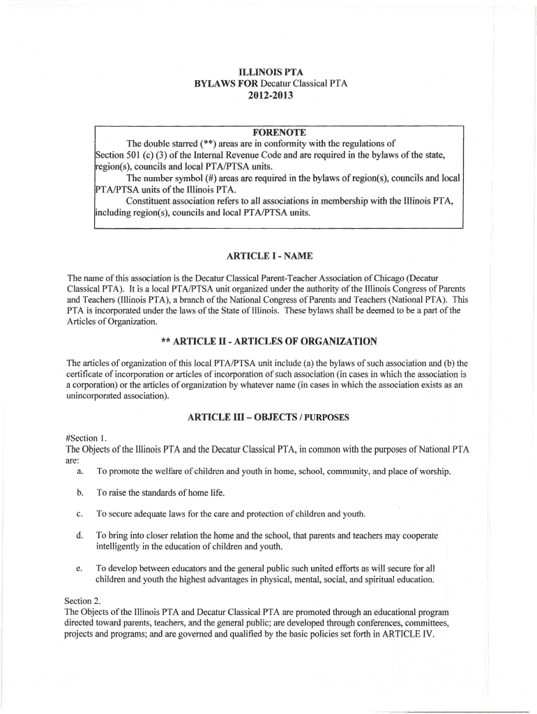 BYLAWS FOR Decatur Classical PTA20122013FORENOTE