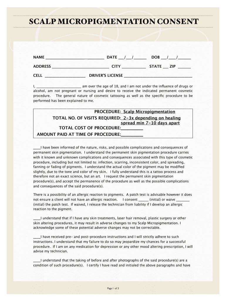 SCALP MICROPIGMENTATION CONCENTRATE DATE / / DOB / / ADDRESS CITY STATE ZIP CELL Driver's LICENSE I, am over the age of 18, and I am not under the influence of drugs or alcohol, am not pregnant or