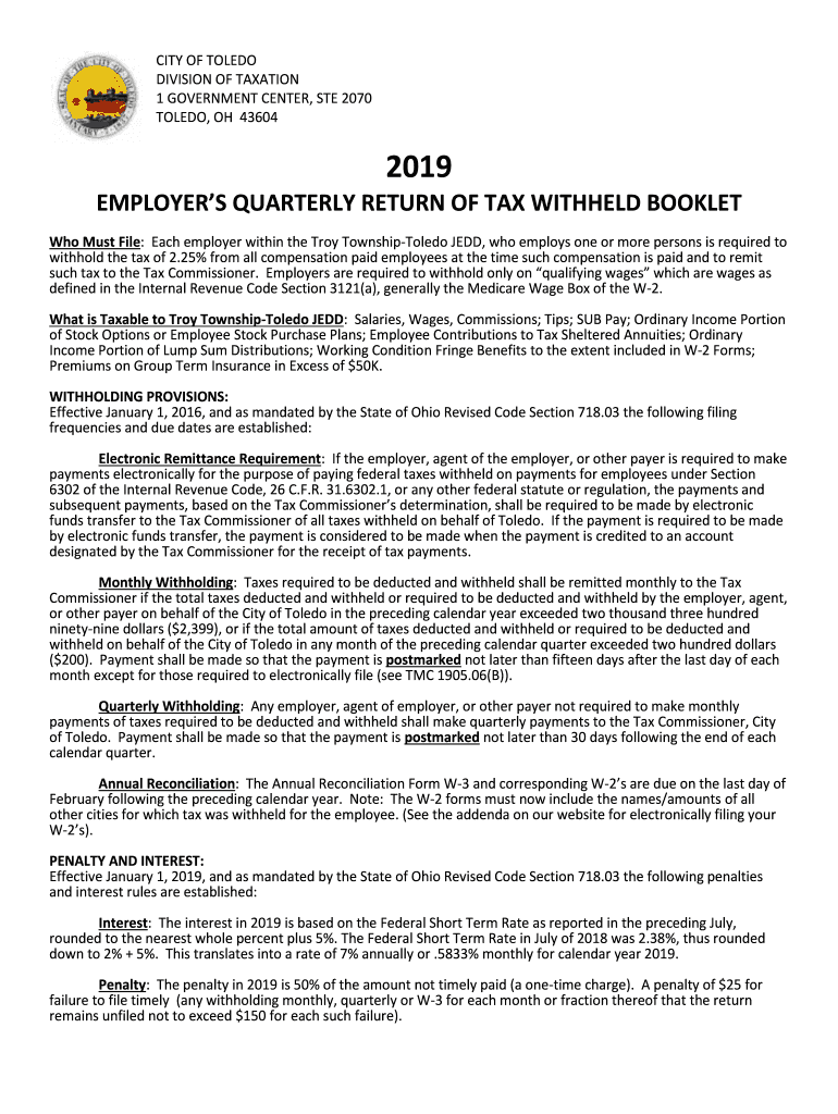 Get the free employer's quarterly return of tax withheld booklet - City of ...