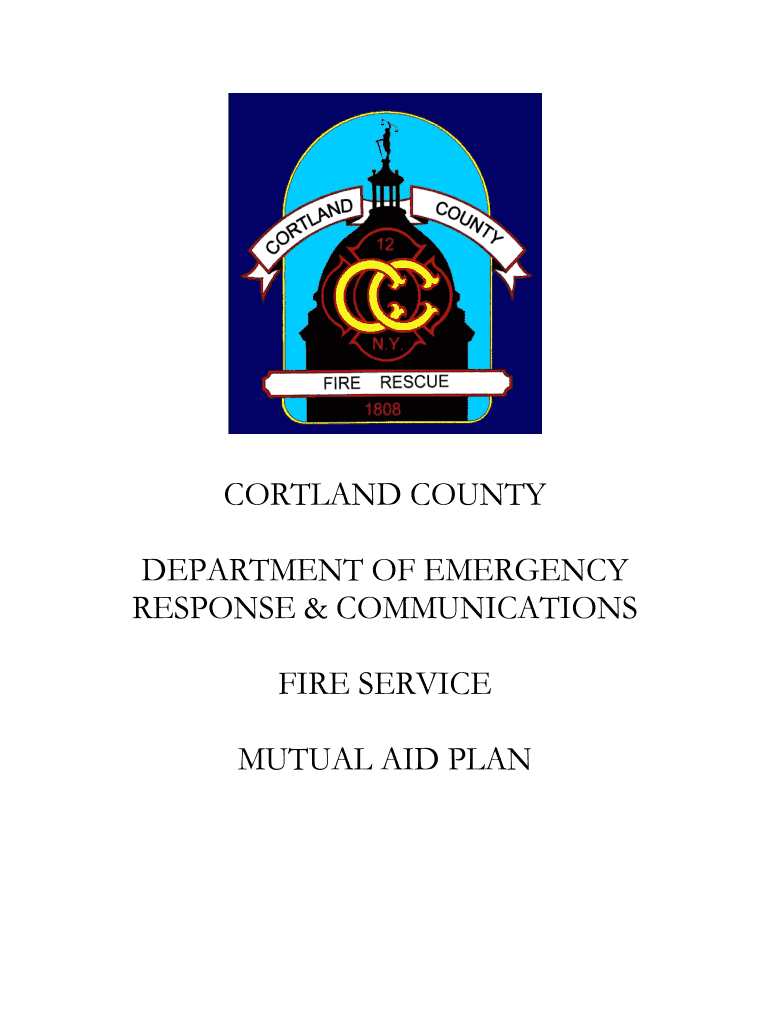 CORTLAND COUNTY DEPARTMENT OF EMERGENCY RESPONSE & COMMUNICATIONS FIRE SERVICE MUTUAL AID PLANTable of Contents ORGANIZATIONAL CHART3OBJECTIVE Purpose Definition Amendments and Recommended Updates