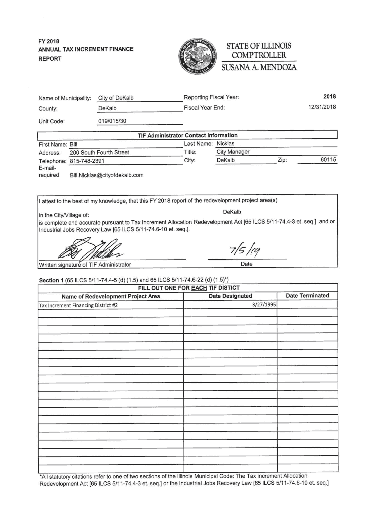 SECTION 2 Sections 2 through 5 must be completed for each redevelopment project area listed in Section 1. FY 2018 Name of Redevelopment Project Area (below): TIF #2 Primary Use of Redevelopment Project