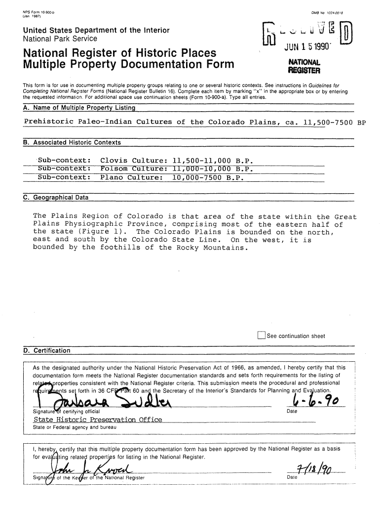 OMB.VO ion0018NPS Form 10900b (Jan 1987)United States Department of the Interior National Park ServiceNational Register of Historic Places Multiple Property Documentation FormJUH151990 NATIONAL Registers