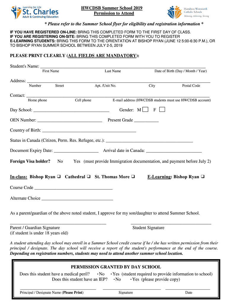 Get the free Summer School - Hamilton-Wentworth Catholic District ...