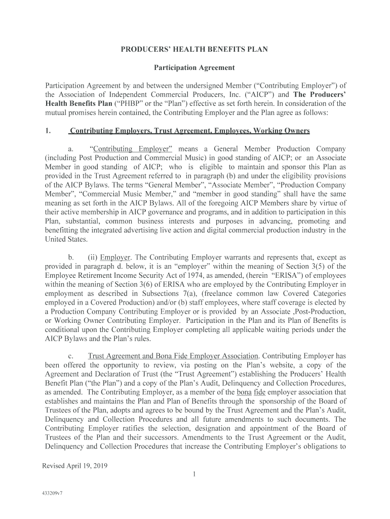Fill out your 2019 revised participation agreement online with pdfFiller!