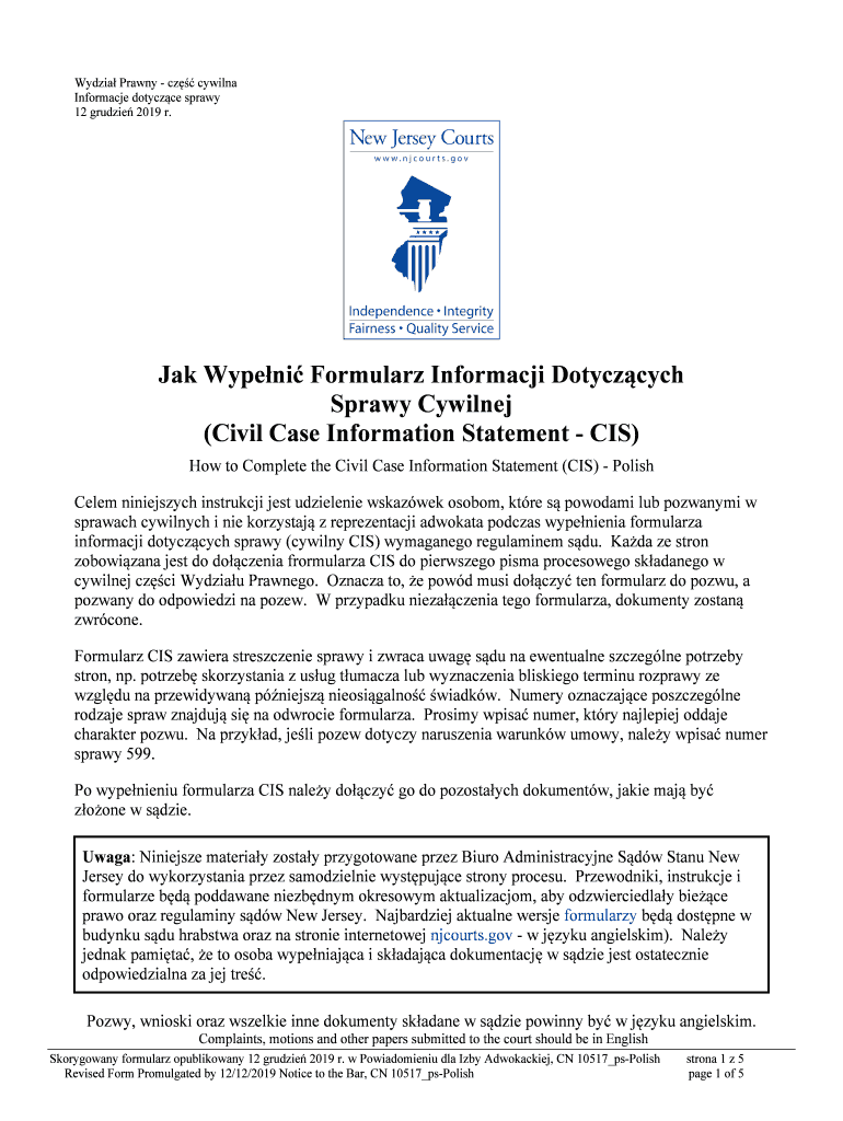 Lydia Prawn CZ China Informal dotyczce spray 12 grudges 2019 r. JAK When Formulary Informal Dotyczcych Spray Cywilnej (Civil Case Information Statement CIS) How to Complete the Civil Case Information