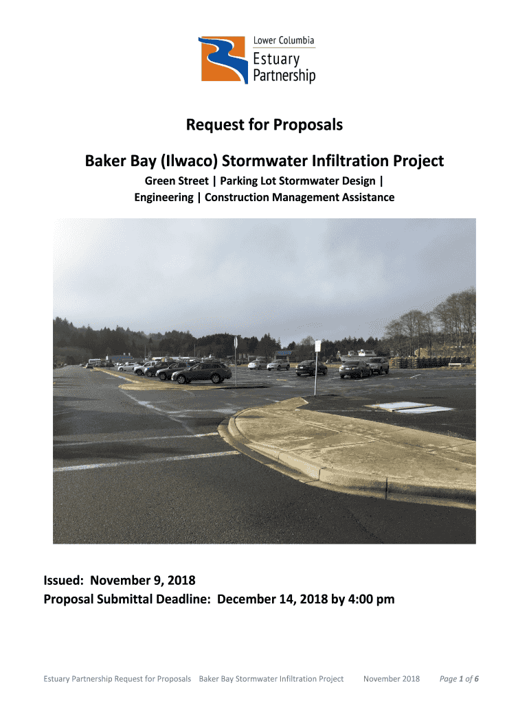 Request for Proposals Baker Bay (Waco) Stormwater Infiltration Project Green Street Parking Lot Stormwater Design Engineering Construction Management AssistanceIssued: November 9, 2018, Proposal Submittal