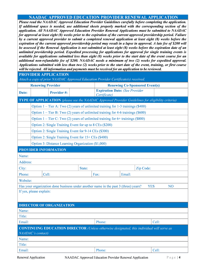 Get the free NAADAC Approved Education Provider Program Renewal Application