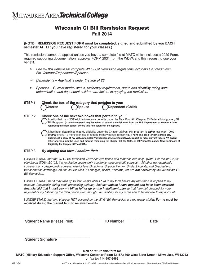 How to Fill Out the Wisconsin GI Bill Remission Request Form Online