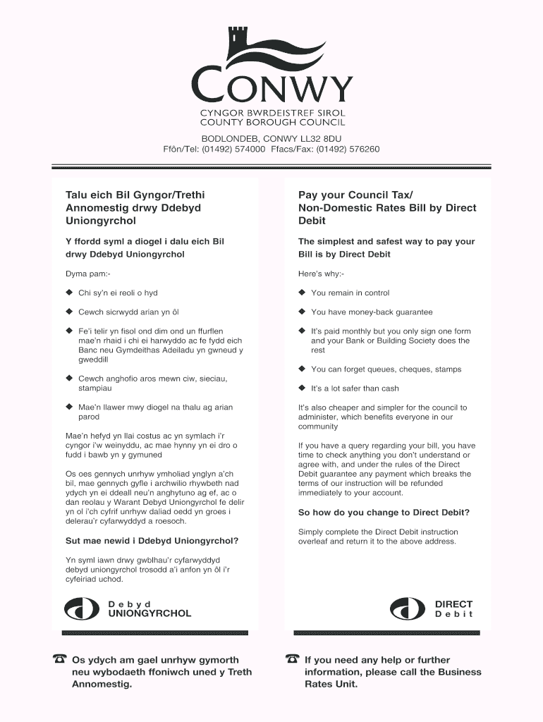 Get the free Direct Debit Instruction Form - Conwy County Borough Council
