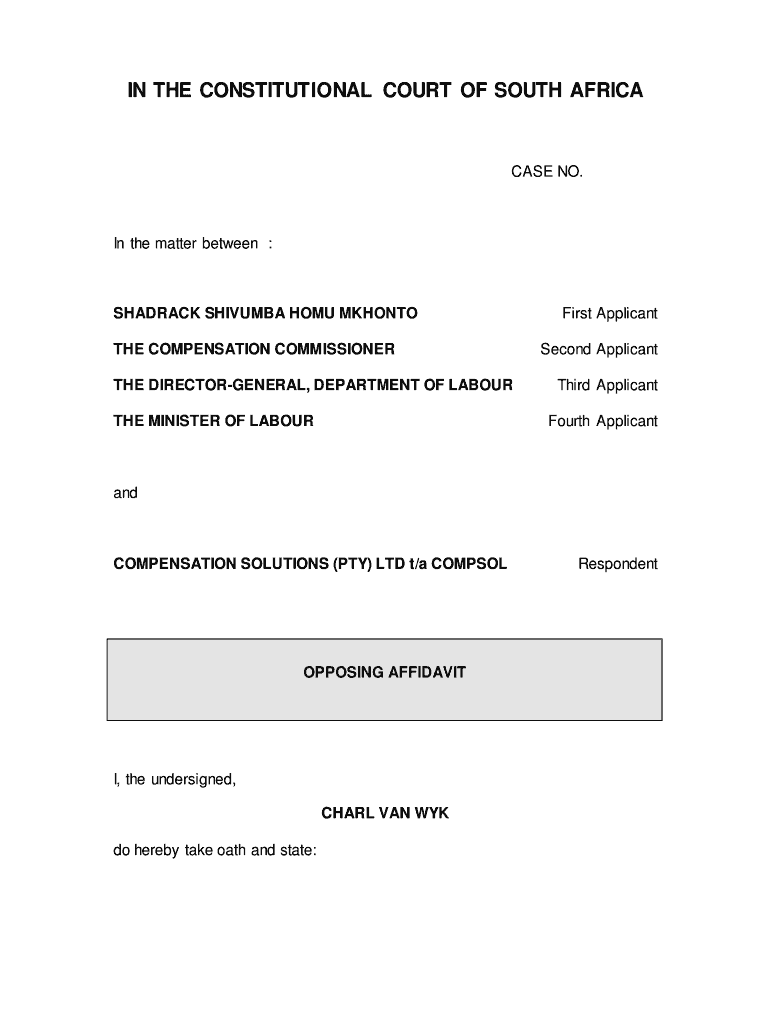 People involved in a legal case that is being heard in the concourt may need the answering affidavit-25519pdf.