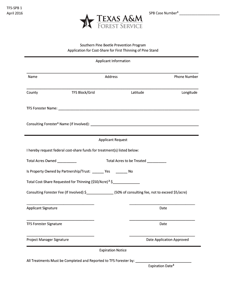 TFS SPB 1 April 2016SPB Case Number3 Southern Pine Beetle Prevention Program Application for Cost Share for First Thinning of Pine Stand Applicant Information Name Address Phone Number County TFS