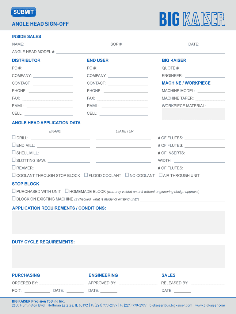 Get the free BIG KAISER Angle Head Sign Off Form