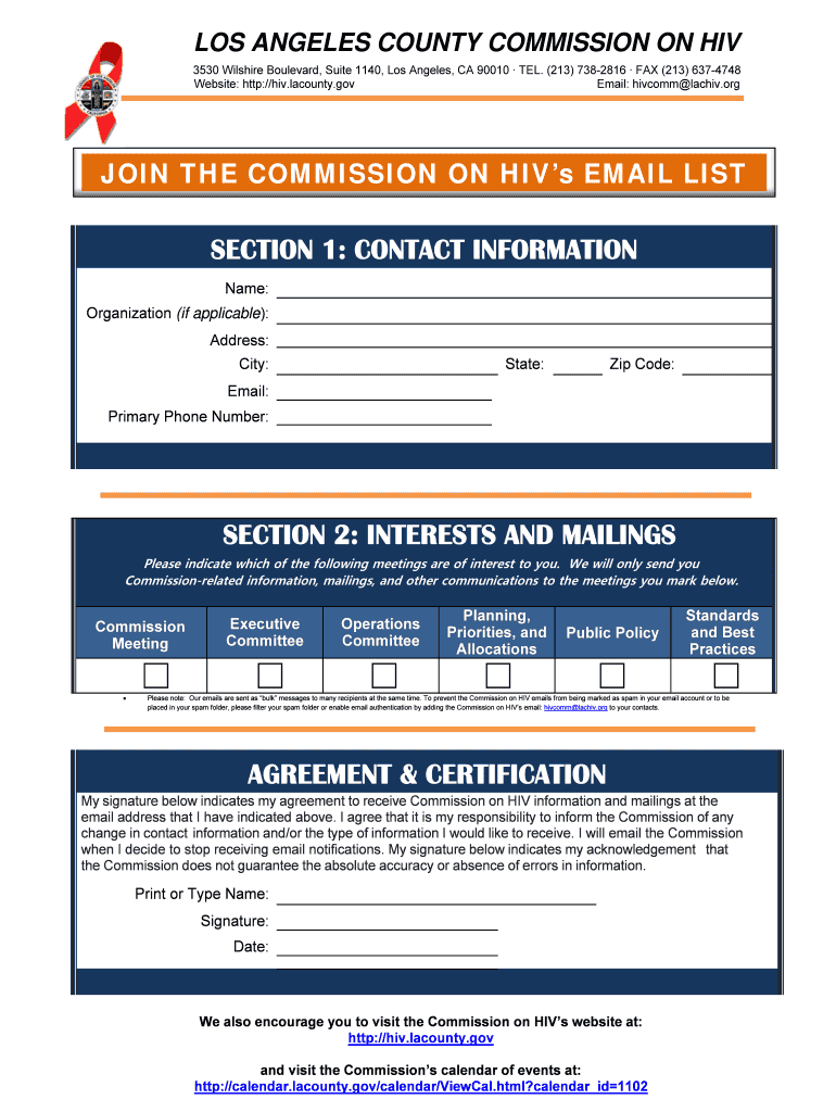 LOS ANGELES COUNTY COMMISSION ON HIV 3530 Wilshire Boulevard, Suite 1140, Los Angeles, CA 90010 TEL. (213) 7382816 FAX (213) 6374748 Website: http://hiv.lacounty.gov Email: income lactic.org JOIN