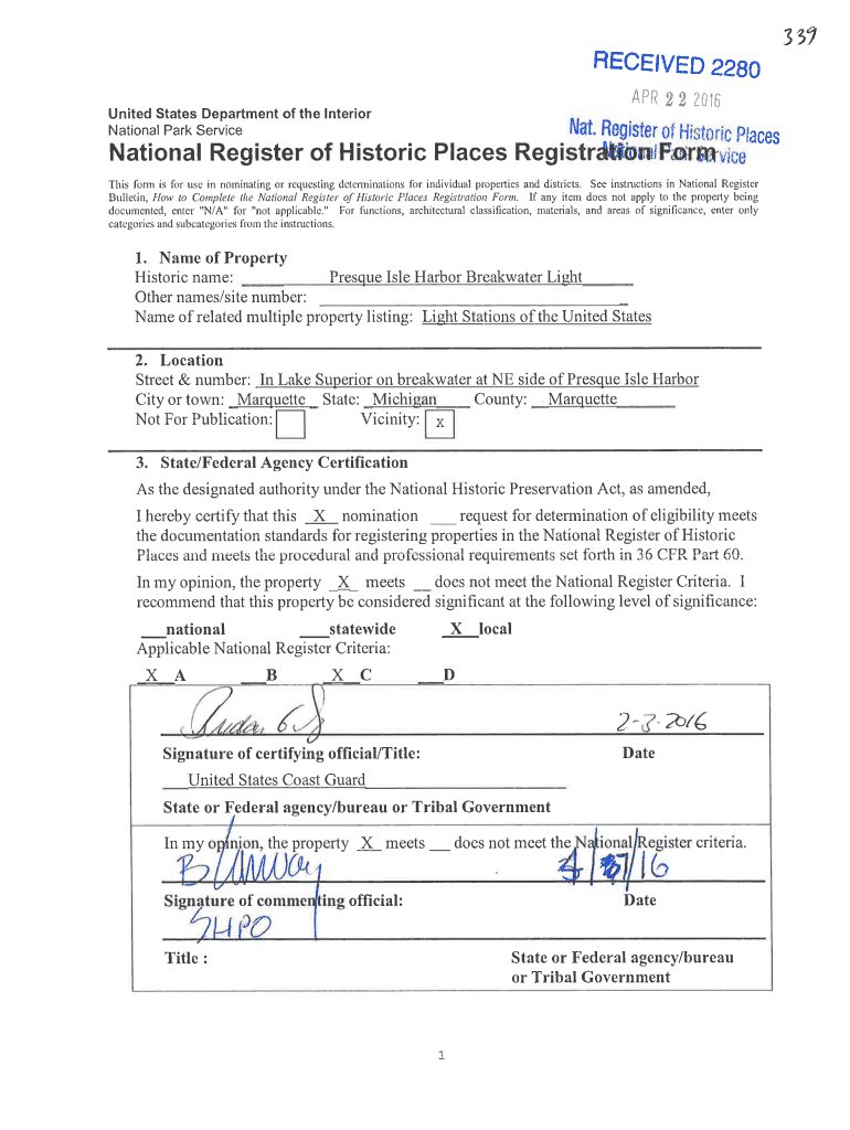 3 3 'I RECEIVED 2280 APR 2 2 2016United States Department of the Interior National Park Service. Nat. Reg.sister of Historic PlacesNational Register of Historic Places RegstrciUmniPiGrliav!this phone