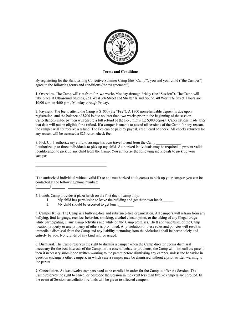 By registering for the Handwriting Collective Summer Camp (the Camp), you and your child (the Camper)