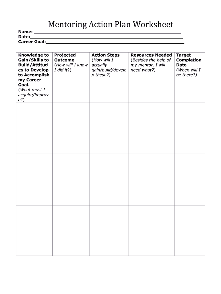 Get the free Mentoring Action Plan Worksheet