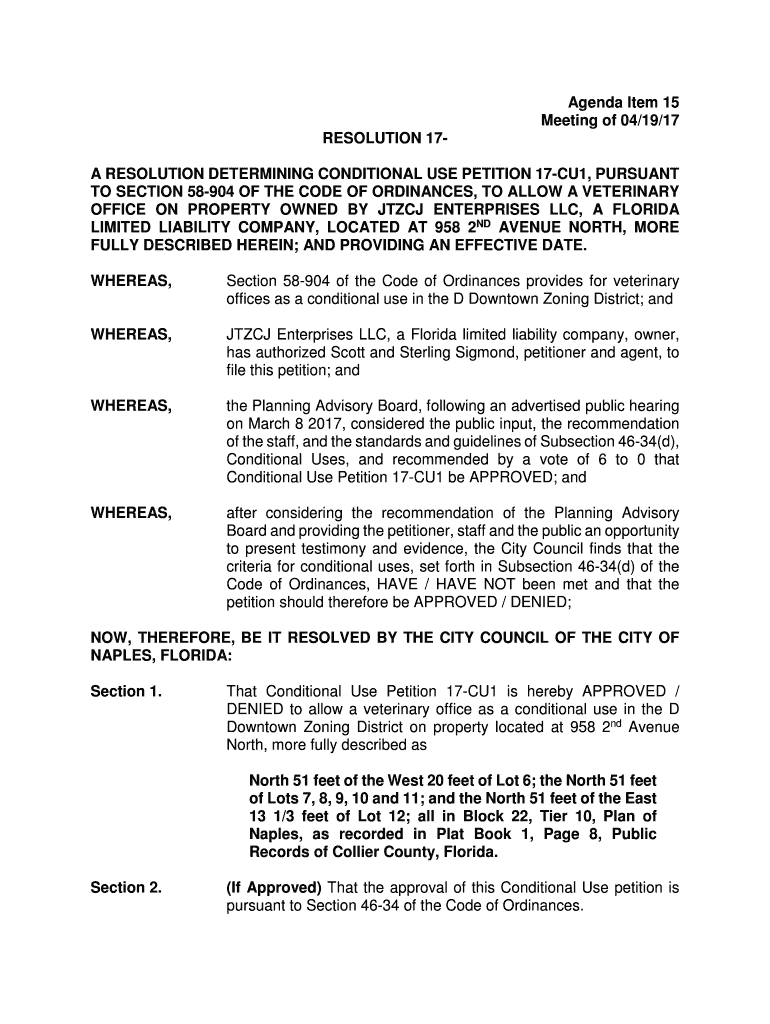 RESOLUTION 17A RESOLUTION DETERMINING CONDITIONAL USE PETITION 17CU1, PURSUANT