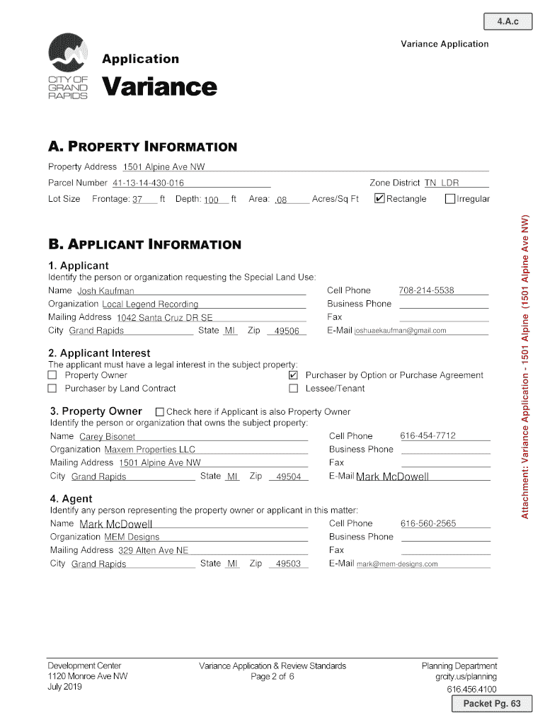 Development Center 1120 Monroe Ave NW Grand Rapids, MI 49503Board of Zoning AppealsAgenda Packet October 17, 2019Public Hearing Room, 2nd Floor.12:00 12:30 p.m. Commissioner's lunchroom 303II.12:30