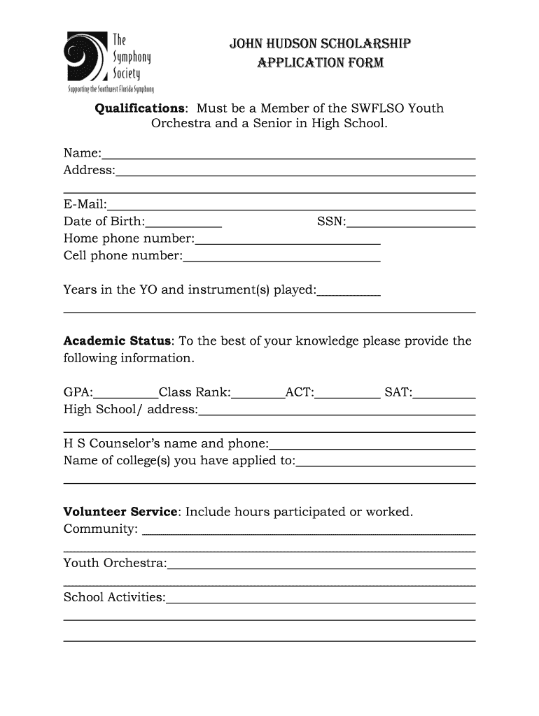 The John Hudson scholarship application is a form that students can fill out to apply for the scholarship established by John Hudson.