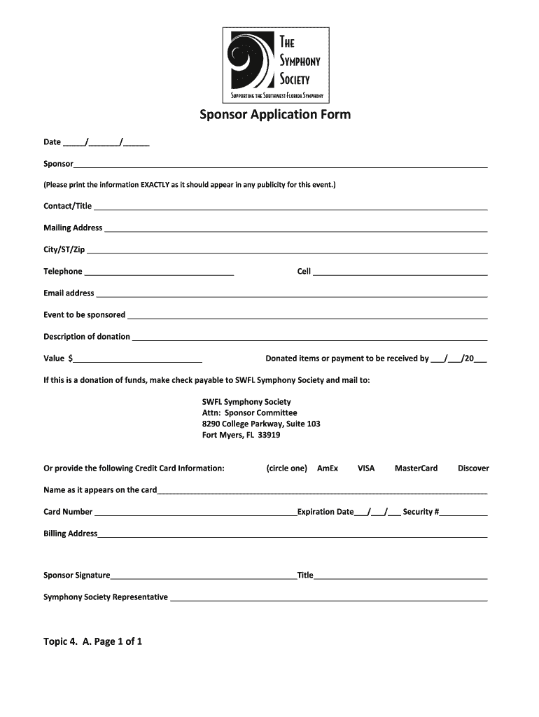 Fill out the required information such as your organization's details, contact information, and the purpose of the sponsorship.