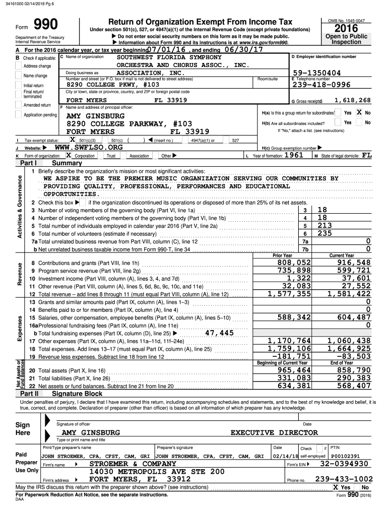 34161000 02/14/2018 Pg 6990FormReturn of Organization Exempt From Income Department of the Treasury