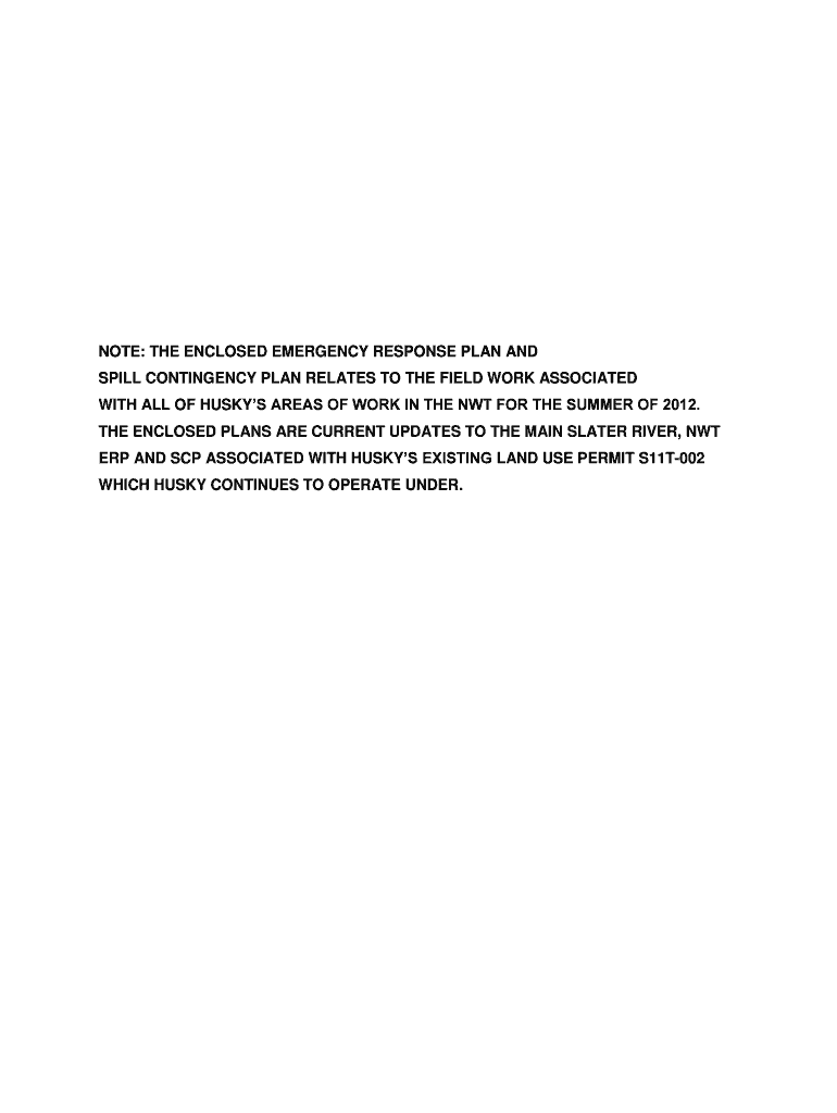 NOTE: THE ENCLOSED EMERGENCY RESPONSE PLAN AND