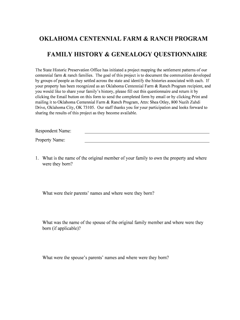 Get the free oklahoma centennial farm & ranch program family history ...