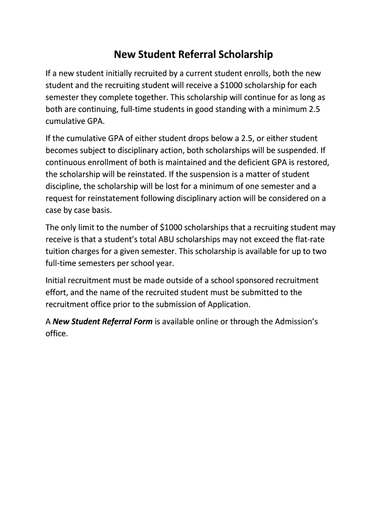 Get the free New Student Referral Scholarship - abu.edu