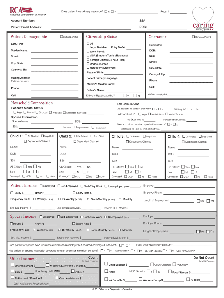 Does patient have primary insurance? Room #RESOURCE CORPORATION OF AMERICAAccount Number:SS#Patient Email Address:DOB:Patient DemographicCitizenship Statuesque as Demons Legal Residents, First: Maiden
