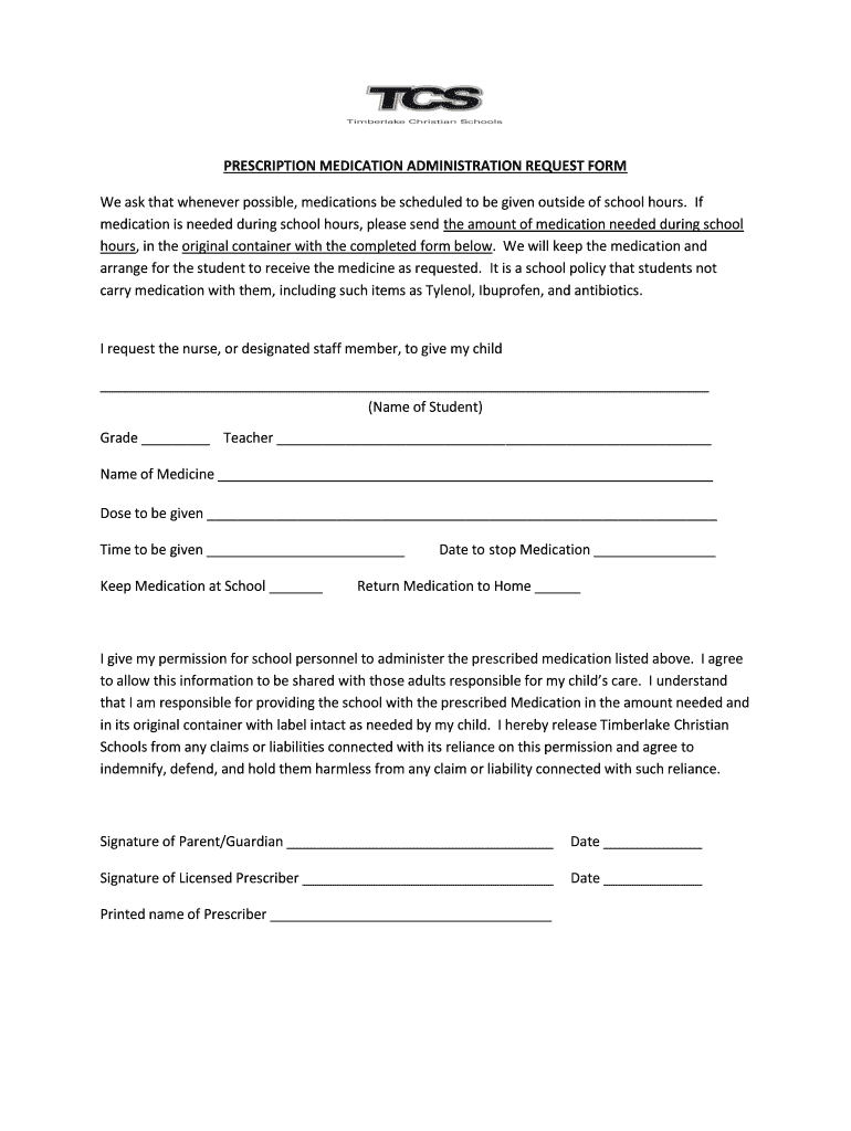PRESCRIPTION MEDICATION ADMINISTRATION REQUEST FORM