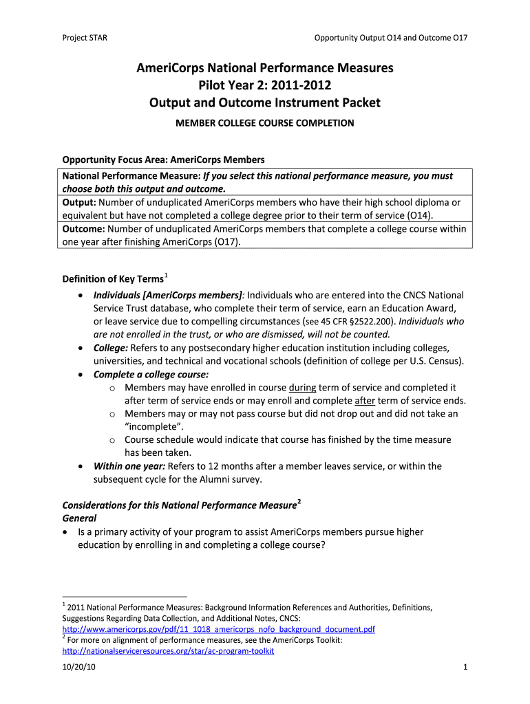 Project STAROpportunity Output O14 and Outcome O17AmeriCorps National Performance Measures