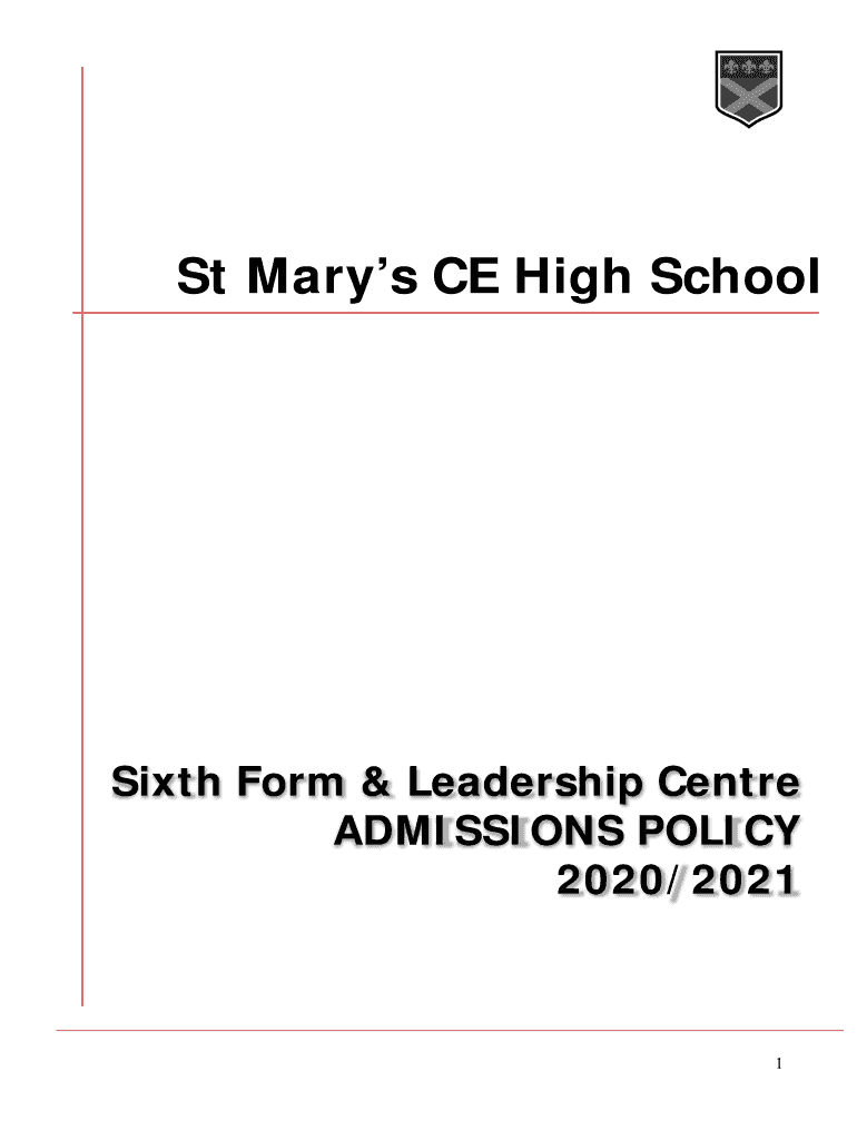 Get the free SMHS Sixth Form Admissions Policy 2020 21 FINAL.docx - st-maryshigh herts sch