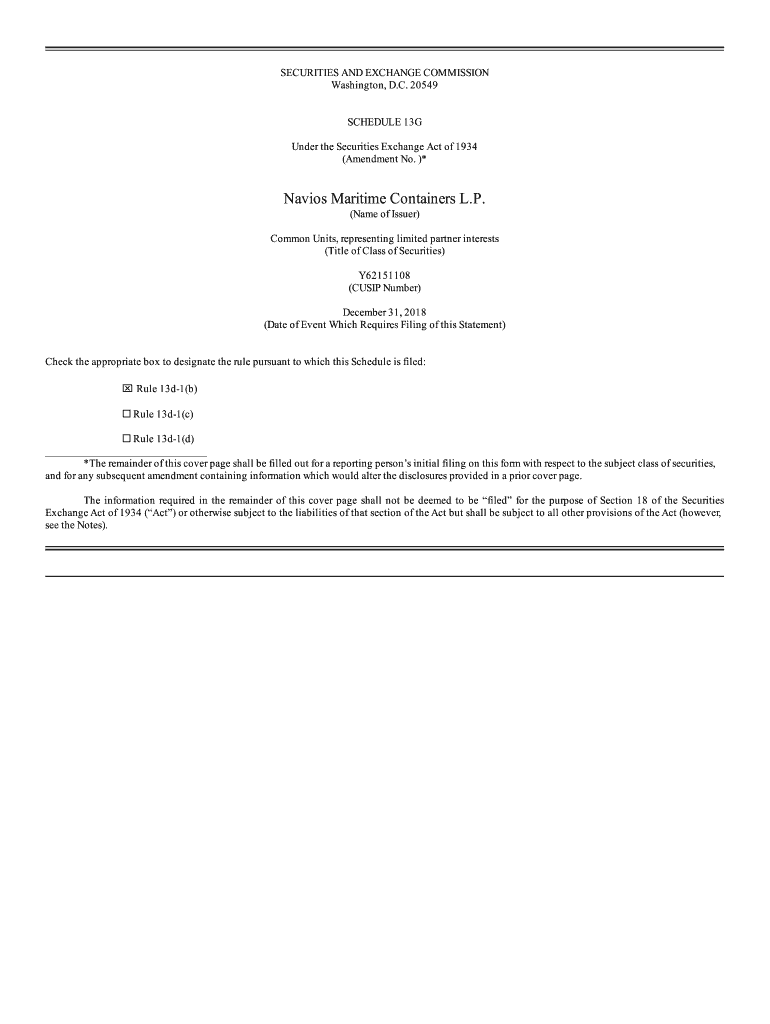 SECURITIES AND EXCHANGE COMMISSION Washington, D.C. 20549 SCHEDULE 13G Under the Securities Exchange Act of 1934 (Amendment No. )*Navies Maritime Containers L.P. (Name of Issuer) Common Units, representing