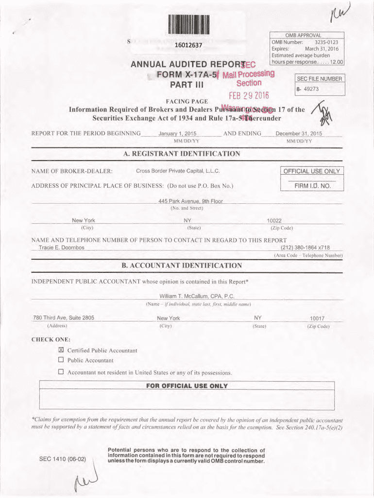 hours per response......12.0016012637ANNUAL AUDITED REPORTED