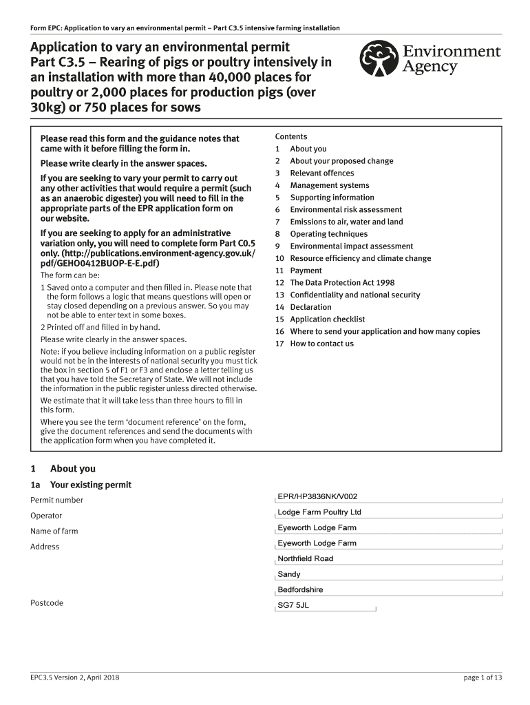 Form EPC: Application to vary an environmental permit Part C3.5 intensive farming installationApplication to vary an environmental permit Part C3.5 Rearing of pigs or poultry intensively in an installation